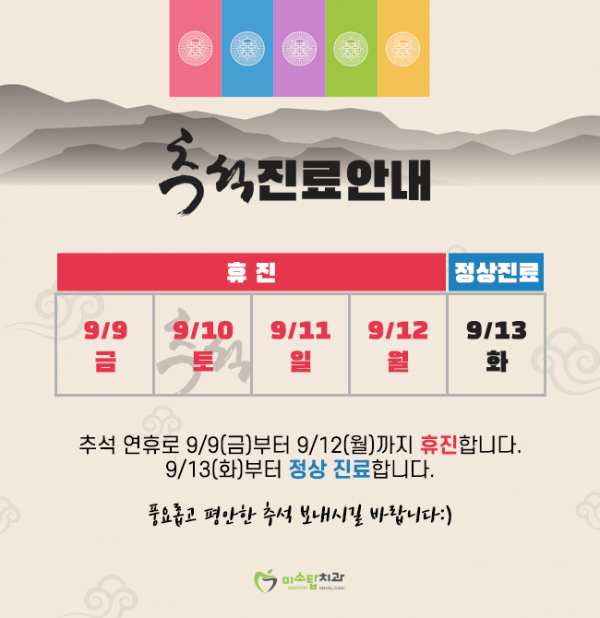목록 2022년 추석 연휴 진료안내 작성자 미소탑 작성일 22-09-08 17:50 | 조회 4,841 | 댓글 0 본문 참고하시어 진료에 착오 없으시길 바랍니다. 다음글 댓글목록 0 등록된 댓글이 없습니다. 목록