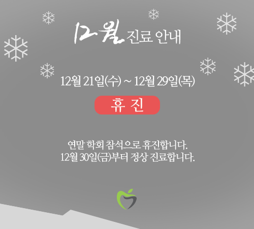 12월 21일(수)부터 12월 29일(목)까지 연말 학회 참석으로 휴진합니다.