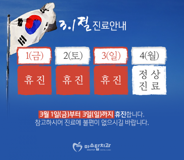 목록 2019년 3월 진료안내 작성자 미소탑 작성일 19-02-26 18:05 | 조회 5,725 | 댓글 0 본문 3월 1일(금)부터 3일(일)까지 휴진합니다. 4일부터 정상 진료합니다. 참고하시어 진료에 불편이 없으시길 바랍니다. 이전글다음글 댓글목록 0 등록된 댓글이 없습니다. 목록